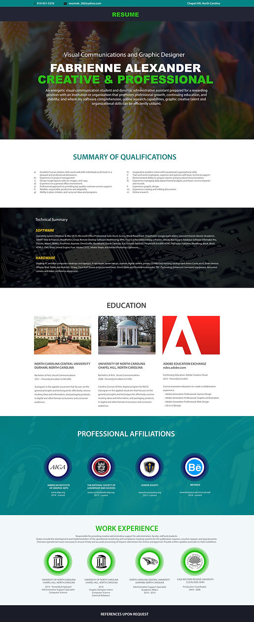 A dynamic administrative assistant and visual communications student, prepared for a rewarding position with an institution or organization that promotes professional growth, continuing education, and stability; and where my software comprehension, online research capabilities, graphic creative talent and organizational skills can be efficiently utilized.